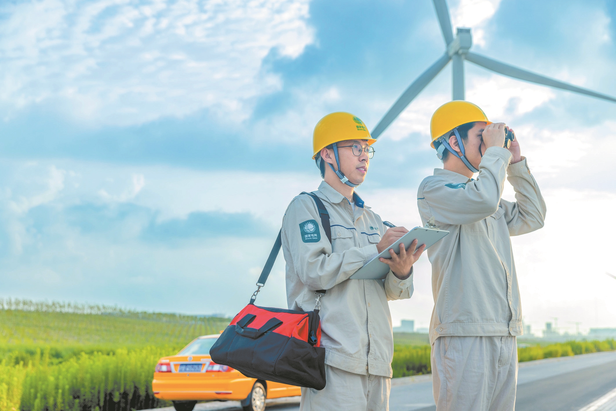國網(wǎng)上海電力員工巡檢臨港新片區(qū)風(fēng)電場送出線路