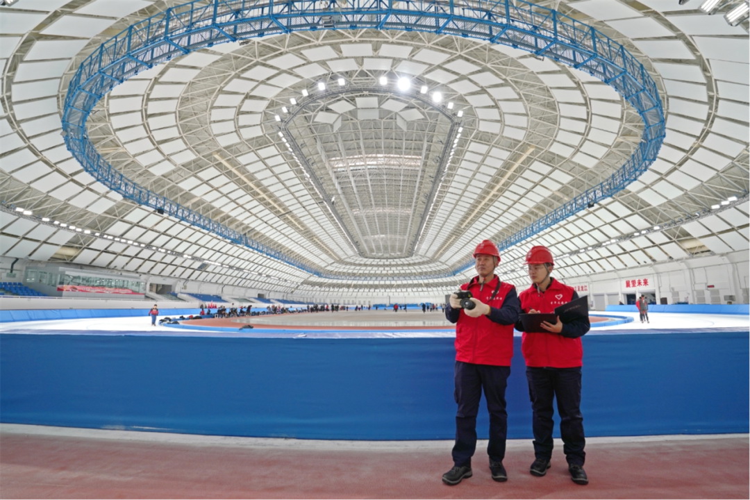 ▲國網(wǎng)黑龍江電力員工對亞冬會速滑館進行特巡
