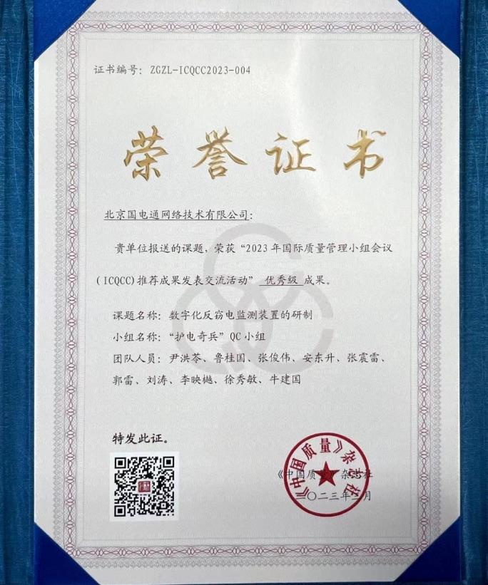中國(guó)電力網(wǎng)訊(通訊員:張俊偉) 4月17日獲悉,國(guó)網(wǎng)信通產(chǎn)業(yè)集團(tuán)國(guó)電通“護(hù)電奇兵”QC小組成果《數(shù)字化反竊電監(jiān)測(cè)裝置的研制》在2023年國(guó)際質(zhì)量管理小組會(huì)議(ICQCC)推薦成果發(fā)表交流活動(dòng)中獲得優(yōu)秀獎(jiǎng)。