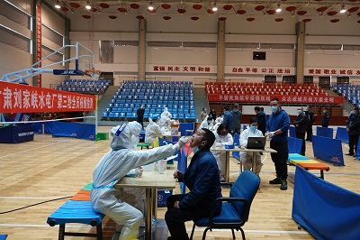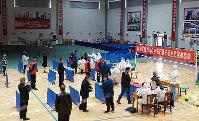 早上8時(shí)起,該廠體育館里工作人員、醫(yī)護(hù)人員和志愿者紛紛忙碌起來,布置采樣桌,擺放電腦,連接網(wǎng)線,檢測(cè)區(qū)域設(shè)置一米間隔。體育館外,等待檢測(cè)的人員攜帶工作證、身份證排隊(duì),由該廠黨員干部、志愿者組成的引導(dǎo)人員在現(xiàn)場(chǎng)維持秩序,提醒待檢測(cè)人員注意間隔、避免扎堆。9時(shí)起,檢測(cè)工作正式開始,志愿者引導(dǎo)待檢人員分組進(jìn)入檢測(cè)現(xiàn)場(chǎng)、有序進(jìn)行登記,醫(yī)護(hù)人員“全副武裝”,身著防護(hù)服、護(hù)面罩,為大家采集咽拭子。檢測(cè)現(xiàn)場(chǎng)設(shè)置十分合理,大家都站在一米間隔線上,隊(duì)伍有序順暢,檢測(cè)速度大幅提升。