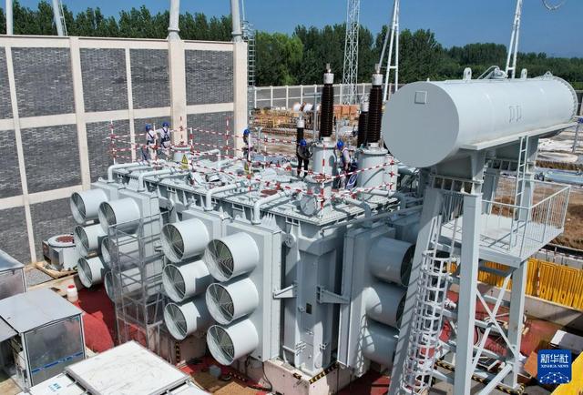 8月5日,工人在雄安(北京西)1000千伏特高壓變電站擴(kuò)容工程建設(shè)工地施工。