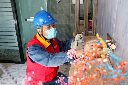 “還好你們提前過來給我們檢查了,這間房的插座和熱水器都沒電,你們給幫忙修一修。”說完該公司黨員服務隊便拿出來工具開始“修”,不一會兒,熱水器便開始燒水了。“我這里的房間現(xiàn)在基本上已經(jīng)被預定了,多虧你們來檢查用電了。” 緣居客棧負責人看著正在更換插座的黨員服務隊隊員感激地說道。