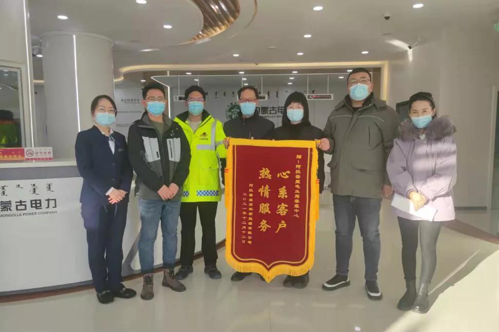 12月13日,內(nèi)蒙古高科新能源有限公司分散式風力發(fā)電項目并網(wǎng)用電負責人將一面寫有“心系客戶 熱情服務(wù)”的錦旗送到客戶服務(wù)中心。