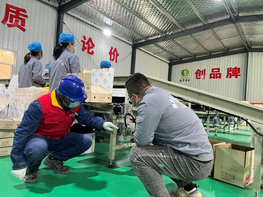 延安供電公司員工在陜西果業(yè)安塞分公司幫助客戶檢查冷庫(kù)用電設(shè)備。馬浩凱 攝