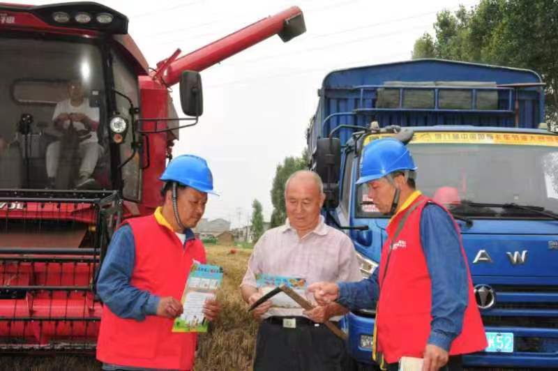 在沁陽市道口村的小麥搶收現(xiàn)場(chǎng),共產(chǎn)黨員服務(wù)隊(duì)員深入田間地頭,向廣大農(nóng)民朋友和收割機(jī)駕駛員發(fā)放電力設(shè)施保護(hù)宣傳資料,提高群眾安全用電和電力設(shè)施保護(hù)意識(shí)。