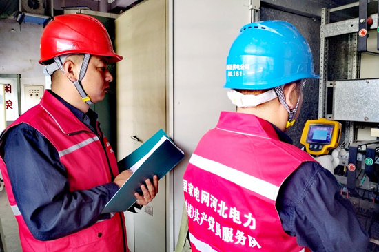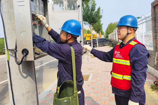 國(guó)網(wǎng)石家莊市欒城區(qū)供電公司黨員服務(wù)隊(duì)隊(duì)員為欒城中學(xué)做好開(kāi)學(xué)前的電力服務(wù)保障。 卞策攝