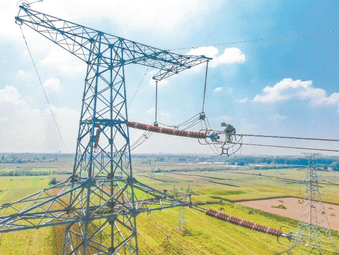 國(guó)網(wǎng)河南超高壓公司員工開(kāi)展帶電作業(yè),保障可靠供電。段家順 攝