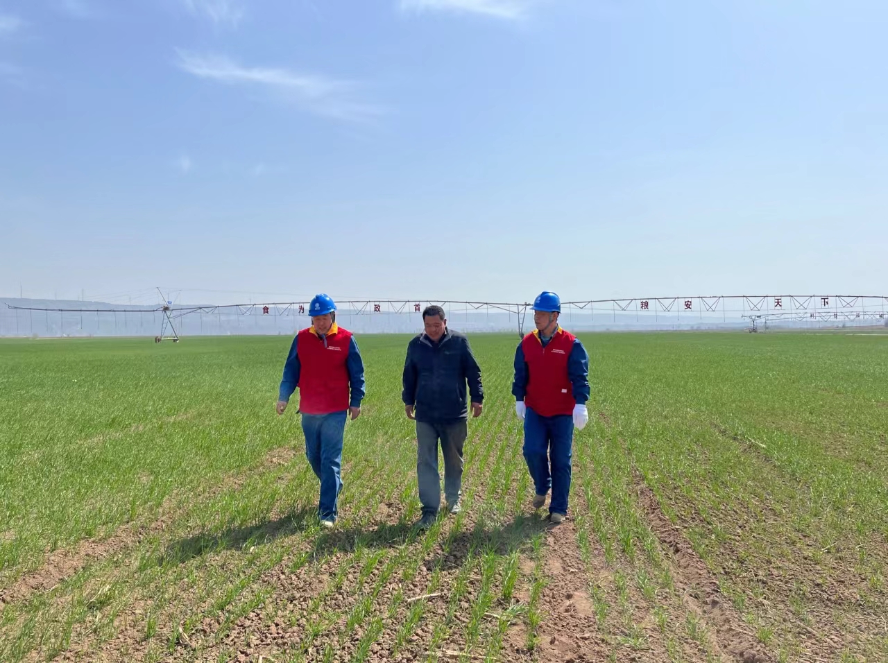 眼下正值春分時節(jié),在黃汾百萬畝糧食優(yōu)質(zhì)高產(chǎn)高效示范區(qū)芮城基地,野綠連天,風(fēng)吹麥浪,香滿兩岸,當(dāng)?shù)匦←滉懤m(xù)進(jìn)入返青期。3月20日當(dāng)天,國網(wǎng)運(yùn)城供電公司“電小田”黨員服務(wù)隊來到遠(yuǎn)鵬智慧農(nóng)場,對農(nóng)灌用電設(shè)備進(jìn)行檢查。