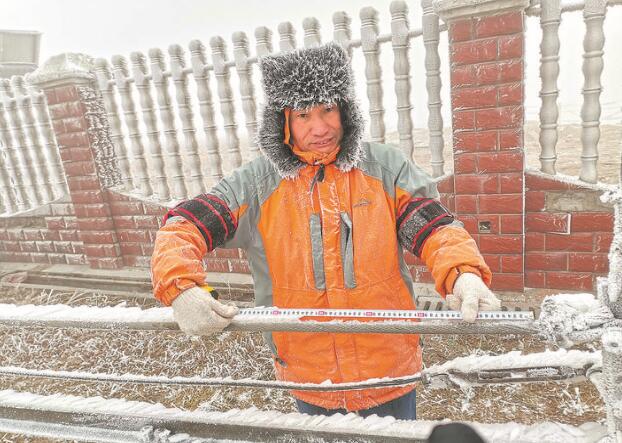 觀冰最遠(yuǎn)點距離觀冰哨3千米,加上山路陡峭,坡度較大,道路覆冰后很容易打滑。觀冰人員來回一趟需要3個小時。觀冰點通常設(shè)置在冰情最嚴(yán)重的地方,山頂與山腰線路覆冰差距最大可達(dá)10毫米。