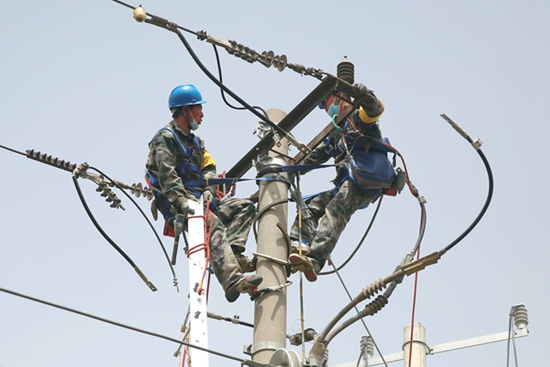 中國電力網(wǎng)訊 5月8日,國網(wǎng)壽光市供電公司工作人員對(duì)10千伏金馬線自來水支線01號(hào)至04號(hào)桿進(jìn)行升級(jí)改造,更換絕緣導(dǎo)線600米、絕緣子6組,加裝拉線2條,進(jìn)一步增強(qiáng)線路安全運(yùn)行能力,為附近居民放心用電提供保障。