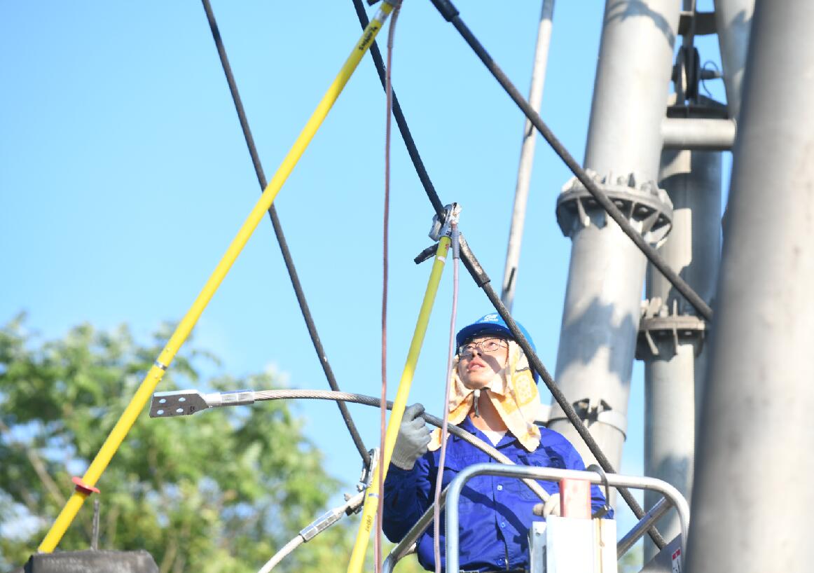 檢修現(xiàn)場(chǎng),作業(yè)人員頂著烈日展開作業(yè),豆大的汗珠不斷從他們的臉上滾落下來,汗水馬上就濕透了衣衫,他們就脫下來放在車上曬干了繼續(xù)穿。為了防止作業(yè)人員中暑,程勇將現(xiàn)場(chǎng)作業(yè)人員分為兩組,不斷輪替作業(yè),進(jìn)一步保證檢修任務(wù)順利推進(jìn)。