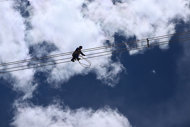 5月底,被譽為“電力天路”的青藏聯(lián)網(wǎng)工程迎來年度集中檢修,超過420人將在15天內(nèi)完成608公里的輸電線路及柴達木換流站的檢修工作。在平均海拔超過4500米的長江源頭腹地,檢修人員克服高寒缺氧的環(huán)境,在云端走線巡檢,成為“電力天路”一道獨特的風(fēng)景。