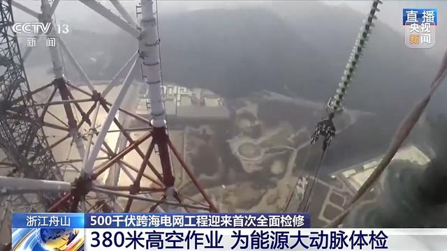 總臺(tái)記者 于晨:我現(xiàn)在所在的位置就是全線四個(gè)架空大跨越線路中規(guī)模最大的一條,位于舟山金塘島一側(cè)的西堠門(mén)大跨越的輸電高塔上,整個(gè)塔高380米,一百二三十層樓高,我們從塔底爬到塔頂就花費(fèi)了1個(gè)多小時(shí)。它是目前世界跨海最高的輸電鐵塔,從金塘島到對(duì)岸的冊(cè)子島,共有兩座這樣380米高的輸電鐵塔。