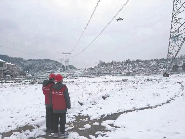 國網(wǎng)湖南電力員工開展無人機(jī)自適應(yīng)巡檢,完成防凍融冰保電工作任務(wù)。國網(wǎng)湖南電力供圖