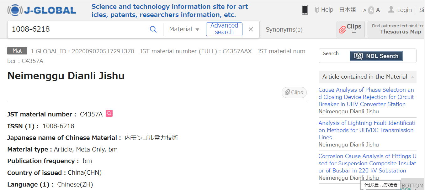 JST(原日本科學(xué)技術(shù)社數(shù)據(jù)庫)是在日本《科學(xué)技術(shù)文獻速報》(世界六大著名檢索期刊之一)基礎(chǔ)上發(fā)展的網(wǎng)絡(luò)版,隸屬于日本政府文部科學(xué)省的科學(xué)技術(shù)管理組織,是日本實施"科技立國"戰(zhàn)略的核心力量,也是日本最重要的科技信息機構(gòu)?!秲?nèi)蒙古電力技術(shù)》被JST收錄,表明期刊在學(xué)術(shù)水平和期刊規(guī)范化等方面得到國際認可,研究內(nèi)容正在受到國際學(xué)術(shù)界的廣泛關(guān)注,期刊的國際影響力進一步增強。