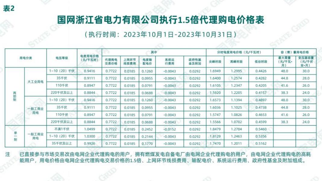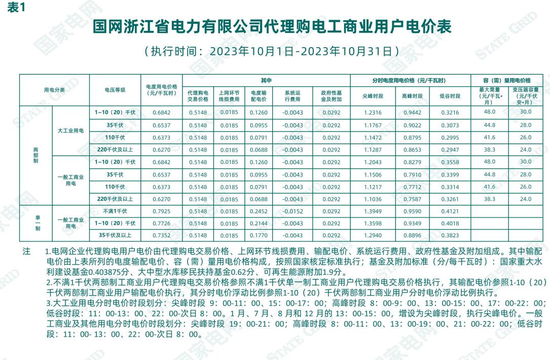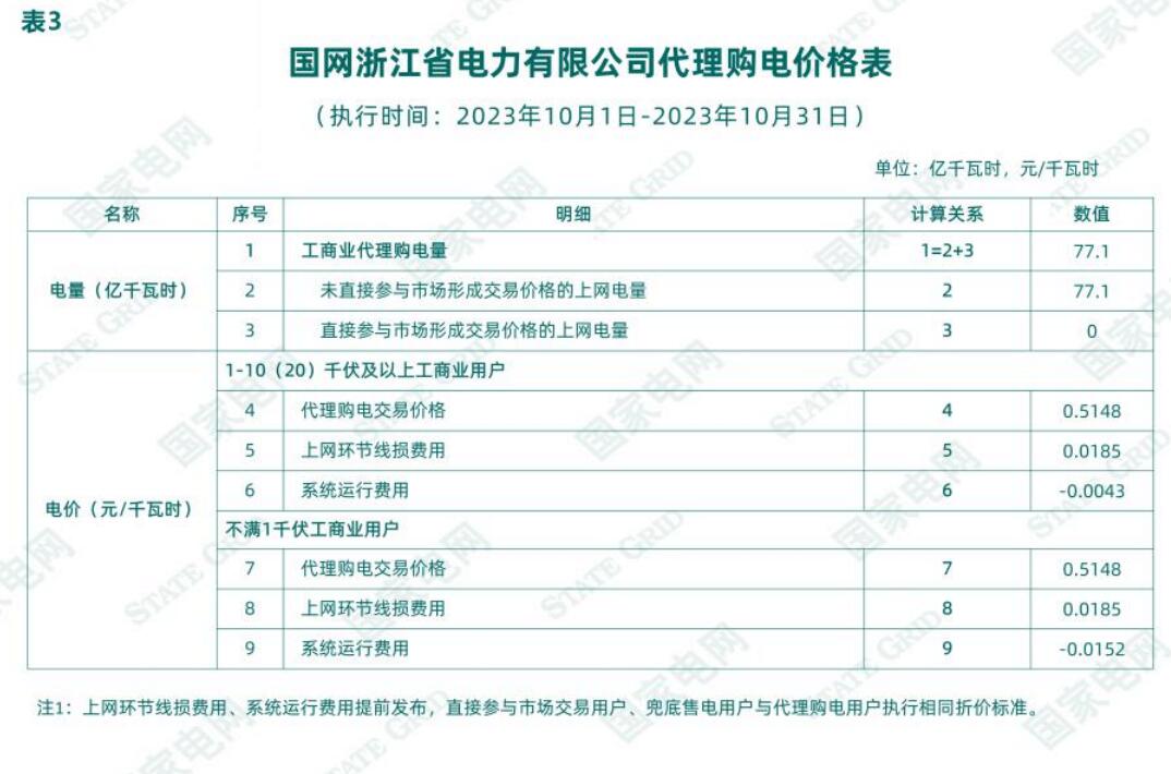 根據(jù)《國家發(fā)展改革委關(guān)于第三監(jiān)管周期省級(jí)電網(wǎng)輸配電價(jià)及有關(guān)事項(xiàng)的通知》(發(fā)改價(jià)格〔2023〕526號(hào))、《國家發(fā)展改革委辦公廳關(guān)于進(jìn)一步做好電網(wǎng)企業(yè)代理購電工作的通知》(發(fā)改辦價(jià)格〔2022〕1047號(hào))、《省發(fā)展改革委關(guān)于轉(zhuǎn)發(fā)<國家發(fā)展改革委關(guān)于第三監(jiān)管周期省級(jí)電網(wǎng)輸配電價(jià)及有關(guān)事項(xiàng)的通知>的通知》(浙發(fā)改價(jià)格〔2023〕139號(hào))、《省發(fā)展改革委關(guān)于轉(zhuǎn)發(fā)〈國家發(fā)展改革委辦公廳關(guān)于進(jìn)一步做好電網(wǎng)企業(yè)代理購電工作的通知〉》(浙發(fā)改價(jià)格〔2023〕99號(hào))、《省發(fā)展改革委關(guān)于轉(zhuǎn)發(fā)〈國家發(fā)展改革委辦公廳關(guān)于組織開展電網(wǎng)企業(yè)代理購電工作有關(guān)事項(xiàng)的通知〉的通知》(浙發(fā)改價(jià)格〔2021〕406號(hào))、《2023年浙江省電力市場化交易方案》(浙發(fā)改能源〔2022〕302號(hào))、《省發(fā)展改革委 浙江能源監(jiān)管辦 省能源局關(guān)于做好2023年度浙江省電力市場化交易相關(guān)工作的通知》《國網(wǎng)浙江省電力有限公司關(guān)于報(bào)備代理購電價(jià)格預(yù)測機(jī)制的函》(浙電函〔2022〕169號(hào)),經(jīng)報(bào)省發(fā)展改革委備案,我公司就2023年10月1日至2023年10月31日代理購電價(jià)格有關(guān)事項(xiàng)進(jìn)行公示,詳見《國網(wǎng)浙江省電力有限公司關(guān)于2023年10月代理工商業(yè)用戶購電價(jià)格的公告》。