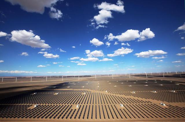 正值進入小寒,在新疆東部的哈密十三間房,勁風(fēng)飛馳,一座座潔白的大型風(fēng)機不停歇地旋轉(zhuǎn)。在新疆南部的塔克拉瑪干沙漠,晴空萬里,一片片亮閃閃的光伏電池板如中央空調(diào)一樣,正在向塞外遠方輸送著綠色“暖氣”。