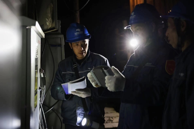 工作人員對“村晚”主要場所供電線路設(shè)備進行巡視(央廣網(wǎng)發(fā) 陸雯 攝)