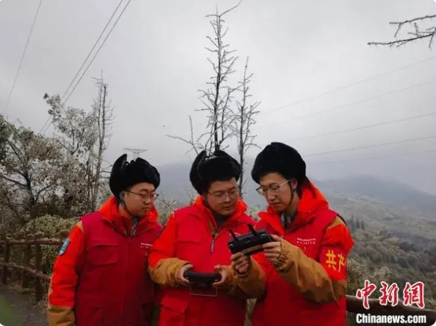 晉電援湘抗冰突擊隊(duì)隊(duì)員利用無人機(jī)觀察冰情。國網(wǎng)山西省電力公司供圖