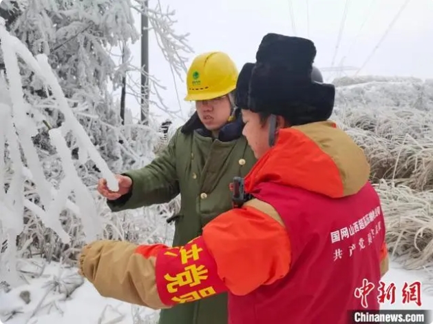 晉電援湘抗冰突擊隊(duì)隊(duì)員觀察冰情。國網(wǎng)山西省電力公司供圖