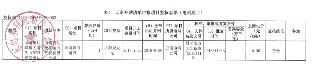 根據(jù)《財政部辦公廳關(guān)于開展可再生能源發(fā)電補貼項目清單審核有關(guān)工作的通知》(財辦建〔2020〕6號)和《國家可再生能源信息管理中心關(guān)于可再生能源發(fā)電補貼項目清單申報與審核工作有關(guān)要求的公告》等文件要求,相關(guān)可再生能源發(fā)電企業(yè)對滿足條件的可再生能源發(fā)電項目進行補貼清單申報,經(jīng)云南電網(wǎng)初審、云南省能源局審核確認、國家可再生能源信息管理中心復(fù)核?,F(xiàn)將國家可再生能源信息管理中心復(fù)核通過的云南補貼清單申報項目復(fù)核名單(電站項目)予以公示。