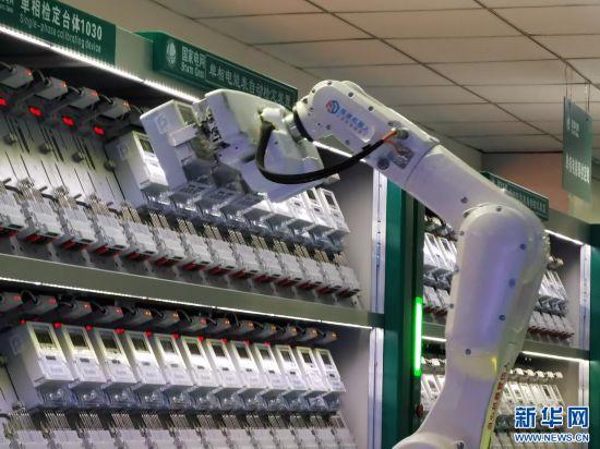 自動化檢定機(jī)器人抓取電能表。新華網(wǎng) 發(fā)(任偉寧 攝)
