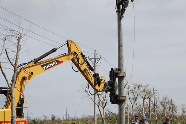 9月16日,在海南省文昌市鋪前鎮(zhèn)七嶺村七嶺2號(hào)臺(tái)區(qū)搶修復(fù)電現(xiàn)場(chǎng),一臺(tái)身著“黃衣”、帶履帶的“龐然大物”,正揮動(dòng)著靈活的機(jī)械臂,伸出它的“鉗子”,穩(wěn)穩(wěn)地抓取12米多長(zhǎng)的電桿,一氣呵成把電桿種到桿洞中。當(dāng)天,只用了3個(gè)多小時(shí),它就完成了10基電桿的立桿作業(yè)任務(wù)。
