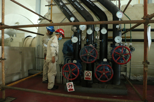 攻堅(jiān)克難,保機(jī)組穩(wěn)定運(yùn)行。大鵬之動(dòng),非一羽之輕也;騏驥之速,非一足之力也。盛夏的廠房?jī)?nèi)異常悶熱,機(jī)組設(shè)備發(fā)出來(lái)的熱量讓人喘不過(guò)氣來(lái),就在這種條件下,該廠干部職工為了快速消除缺陷,不懼困難,連續(xù)奮戰(zhàn)在現(xiàn)場(chǎng)。總工程師叮囑大家注意安全,輪換休息,防止中暑,并協(xié)調(diào)解決工器具及材料,查看作業(yè)環(huán)境,檢查安全措施;設(shè)備部積極與哈爾濱電機(jī)廠取得聯(lián)系,請(qǐng)專業(yè)人員入廠探討解決方法,同時(shí)編制安全技術(shù)組織措施方案,解決設(shè)備作業(yè)過(guò)程中遇到的技術(shù)性問題,對(duì)設(shè)備作業(yè)過(guò)程中出現(xiàn)的質(zhì)量問題提出整改意見;安監(jiān)部強(qiáng)化監(jiān)督,從兩票控制措施執(zhí)行、腳手架及現(xiàn)場(chǎng)防爆行燈漏電保護(hù)器的使用情況到確認(rèn)施工現(xiàn)場(chǎng)氫氣含量等無(wú)死角的全程檢查盯守,為消缺工作保駕護(hù)航;發(fā)電部運(yùn)行人員全力配合,嚴(yán)格按照工作票所列危險(xiǎn)點(diǎn)布置安全措施,開關(guān)閥門,在檢修期間密切監(jiān)視發(fā)電機(jī)風(fēng)溫,發(fā)現(xiàn)問題及時(shí)對(duì)參數(shù)進(jìn)行調(diào)整,在保證機(jī)組安全運(yùn)行的基礎(chǔ)上,為消缺工作創(chuàng)造便利條件;電氣車間電機(jī)班人員分解氫冷器冷卻水出、入口法蘭短接及彎頭,在氫冷器冷卻水入口法蘭處加裝堵板,把配制好的藥液從氫冷器冷卻水出口彎頭處注滿氫冷器。工作中大家分工明確,忙而不亂,盡管現(xiàn)場(chǎng)氣溫高,卻沒有阻擋大家的干勁。