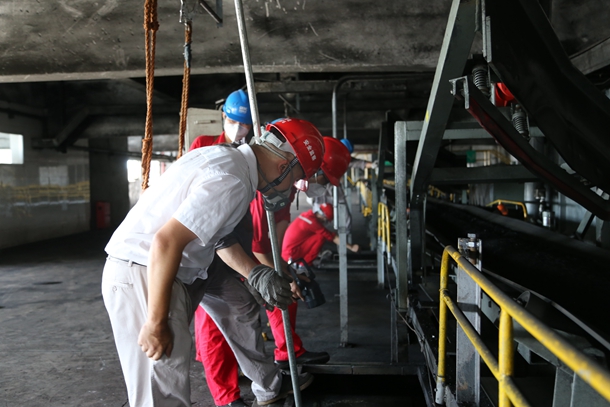 隨著近期氣溫不斷上升,該公司兩臺鍋爐爐前煤倉粘壁嚴(yán)重、爐前倉溫度升高、給煤不暢,給煤機(jī)頻繁斷煤,當(dāng)前又值迎峰度夏供熱負(fù)荷高峰期,嚴(yán)重影響機(jī)組安全穩(wěn)定運(yùn)行,為保證機(jī)組穩(wěn)定可靠,該公司周密部署,專門制定了《鍋爐煤倉清理施工方案》,在不影響機(jī)組正常生產(chǎn)的情況下對爐前倉分批清理。為確保安全進(jìn)度兩不誤,在清理過程中設(shè)專人現(xiàn)場監(jiān)護(hù),經(jīng)過兩天時(shí)間的艱辛奮斗,順利完成兩臺爐煤倉的清理工作。