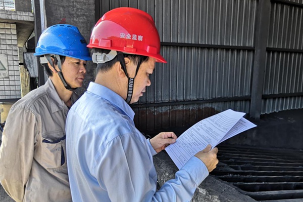 圖為檢查人員在檢查安全措施執(zhí)行情況