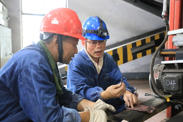 中國電力網(wǎng)訊 9月10日,神皖馬鞍山公司鍋爐檢修人員正在討論設備零配件如何復裝。為保障電力設備長周期可靠運行,該公司設備管理部重新梳理點檢定修制度,對設備問題開展查找、診斷、處理一系列操作,力求對設備健康狀態(tài)全方位掌控,完成設備的定期檢查和維護。