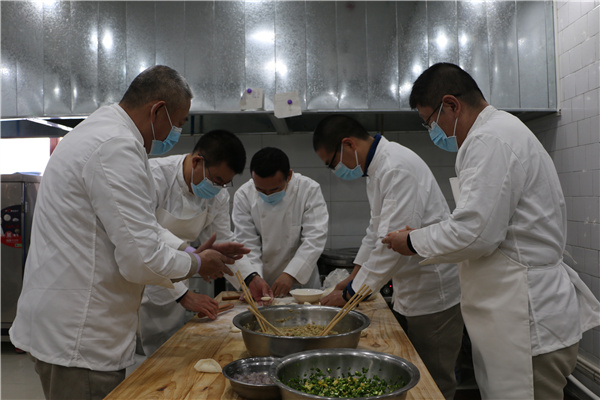 現(xiàn)場慰問結(jié)束后,廠領(lǐng)導們來到職工餐廳,同餐廳值班人員一起為在崗職工包起了餃子,他們還將一些水果糖也包到餃子里,祝愿職工在新的一年里生活更加甜蜜和幸福。