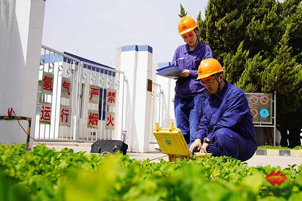圖為員工測量制氫站防雷設(shè)施接地導(dǎo)通電阻