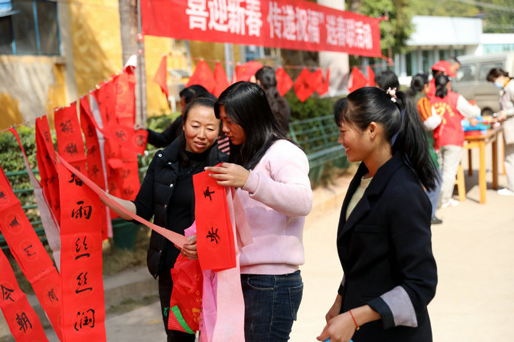 志愿者早早地將1000多幅春聯(lián)和福字掛上,“春風(fēng)拂嶺千山翠,政策歸心萬(wàn)世昌”、“春色明媚山河披錦繡,華夏騰飛祖國(guó)萬(wàn)年輕”,一副副紅紅火火的春聯(lián),一張張祈愿平安的“福”字,為即將到來(lái)的春節(jié)增添了濃濃的喜慶氛圍。不少職工和外來(lái)務(wù)工人員聞?dòng)嵹s來(lái)領(lǐng)取春聯(lián),喜悅之情溢于言表。“今年我們響應(yīng)國(guó)家倡議,計(jì)劃就地過(guò)年。”老家在四川的吳女士拿著自己挑選的春聯(lián),滿是感謝:“本來(lái)打算出去買(mǎi)春聯(lián),增加點(diǎn)迎春氣氛,現(xiàn)在有了,也將福氣帶回家,感謝公司想得周到。”
