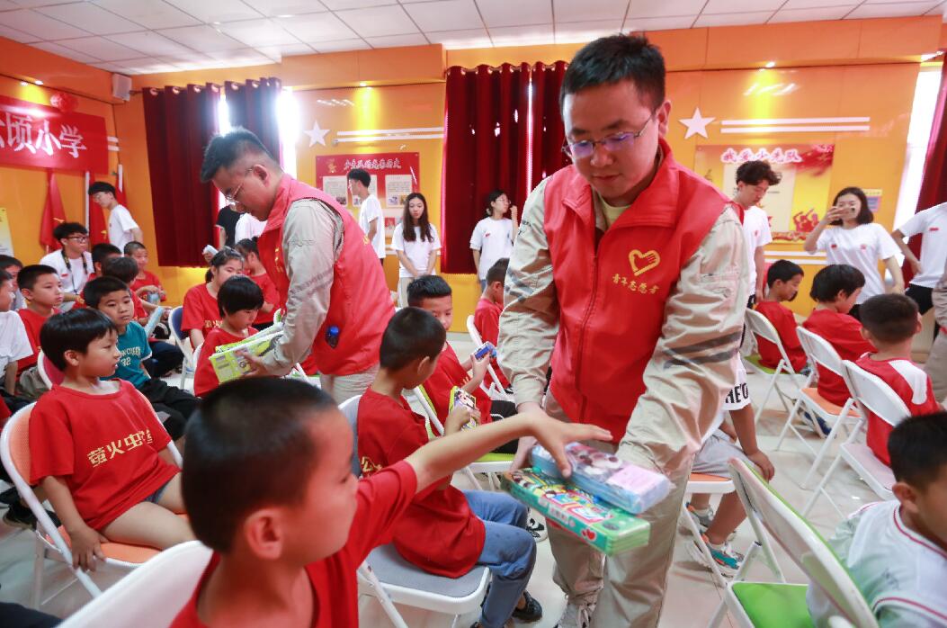 活動(dòng)中,志愿者向小朋友們播放了百集微紀(jì)錄片《信物百年》第43集《渡江戰(zhàn)役第一船“京電輪”》,一起了解在大唐集團(tuán)澎湃發(fā)展歷程背后有著“渡江第一船”之稱的英雄船——“京電輪”的故事,引導(dǎo)他們傳承紅色信仰,堅(jiān)定理想信念。在電力安全課上,為讓深?yuàn)W難懂的火電廠生產(chǎn)流程及環(huán)保工藝變得更易于理解,志愿者們通過(guò)精美PPT和現(xiàn)場(chǎng)設(shè)備實(shí)體畫面相結(jié)合的形式將火電廠生產(chǎn)流程及環(huán)保工藝進(jìn)行呈現(xiàn),用實(shí)驗(yàn)與講課相結(jié)合的方式讓電路變得具象而生動(dòng)。答題環(huán)節(jié)中,小朋友們踴躍舉手,將自己剛學(xué)習(xí)理解的電路知識(shí)說(shuō)出來(lái),加強(qiáng)了學(xué)生們對(duì)于電力生產(chǎn)知識(shí)及安全用電知識(shí)的了解。此外,志愿者們還精心準(zhǔn)備學(xué)習(xí)用品,鼓勵(lì)同學(xué)們努力學(xué)習(xí),天天向上。