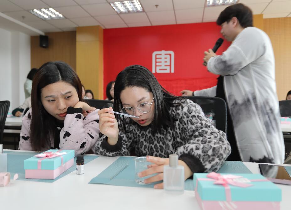在活動(dòng)現(xiàn)場,來自專業(yè)的老師向大家講解了關(guān)于香水的知識,并帶領(lǐng)大家試香,選擇自己喜歡的香型。在詳細(xì)講解并示范了香水調(diào)制的方法與步驟后,大家紛紛迫不及待地開始嘗試,制作自己喜歡的專屬香水。最后將成品放入精美的香水瓶中,就像一件件藝術(shù)品,令人賞心悅目。在基層項(xiàng)目部,盡管很多女員工第一次制作點(diǎn)心,但個(gè)個(gè)心慧手巧。通過烘烤加工,現(xiàn)場制作的糕酥新鮮出爐,香飄四溢,讓人垂涎欲滴,香味俱全,絲毫不亞于專賣店的成品蛋糕。