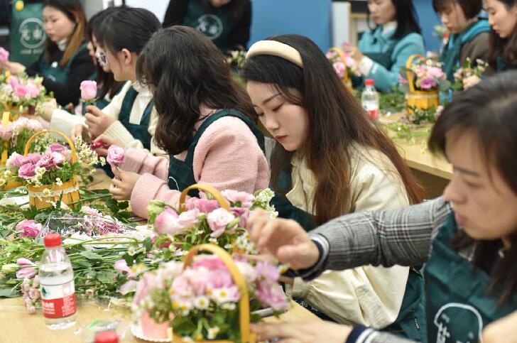該公司首先開(kāi)展了插花知識(shí)培訓(xùn),培訓(xùn)在輕松愉快的氛圍中展開(kāi),花藝師為大家講述了鮮花養(yǎng)護(hù)知識(shí)、鮮花的種類和插花中要注意的層次、色彩、主次關(guān)系等,并進(jìn)行了現(xiàn)場(chǎng)示范。在花藝?yán)蠋煹闹v解下,現(xiàn)場(chǎng)的女職工們用靈巧的雙手,將玫瑰、康乃馨、洋桔梗,洋甘菊等多種花材修剪、整枝,再根據(jù)不同的色彩、形狀有層次的搭配在一起。
