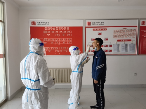 加強(qiáng)人員管控。該風(fēng)場青年突擊隊(duì)成員嚴(yán)格把控場區(qū)入口,建立進(jìn)出“白名單”,對于外來車輛、人員執(zhí)行“非必要不接待”原則,必要時堅(jiān)決做到“一問二測三登記”,查驗(yàn)“兩碼”信息和48小時內(nèi)核酸陰性檢測證明,并及時與當(dāng)?shù)卣酪卟块T報(bào)備,確認(rèn)無誤后方可入場。