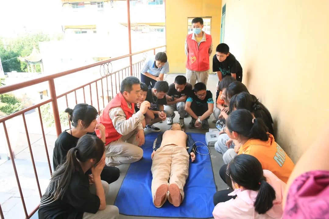 活動現(xiàn)場,青年志愿者給孩子們發(fā)放了安全環(huán)保宣傳手冊及宣傳單,給孩子們認真講解交通安全、消防滅火和生活中的安全防護知識,緊緊圍繞“遵守安全生產法 當好第一責任人”主題,為孩子們進行“面對面、零距離、互動式”宣講、普及、解答有關應急救援知識。借助橡皮人給孩子們培訓心肺復蘇急救知識,詳細講解操作流程和注意事項,并指導孩子們親自上手操作實踐,提升孩子們的應急防護能力。