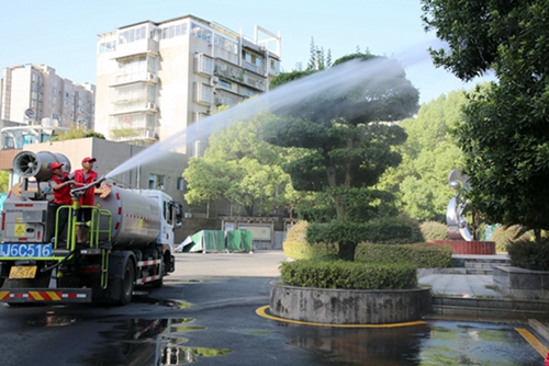 “水管已接好,可以放水了。”“前面的人把槍管扶好,水來了!”“沒想到消防水管這么重,還好我們?nèi)硕嗔α看蟆?rdquo;……噴射的水柱,在陽光的照射下猶如一道道彩虹,為久旱的花草樹木帶去生機和力量。志愿者們分成三組,一組拉著長長的消防水管,其他兩組分別操控灑水車、霧炮車的噴水槍,同時戰(zhàn)斗,分區(qū)澆灌,按照“細澆慢灌、澆足澆透”的原則,頂著烈日,熱火朝天地對綠化帶、草坪以及樹木等進行灌溉,顧不上濕透的全身和因長時間托舉水管水槍而早已酸痛的胳膊,只為守護溫馨、優(yōu)美的生活環(huán)境。經(jīng)過奮戰(zhàn),看著濕潤的草地和舒展生機的植被,大家浸透著汗水的臉上露出了欣慰的笑容。