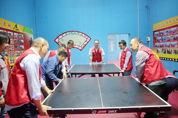 當(dāng)天上午9時,該公司招募了來自三期項目黨支部的10余名黨員志愿者,開展了第一次“陜電之光”志愿服務(wù)活動,為當(dāng)晚即將進(jìn)行的湖南石門五洲乒乓球俱樂部“五周年慶典暨健平源杯”乒乓球團(tuán)體賽布置場地?;顒又?,志愿者們齊心協(xié)力將乒乓球臺、比賽圍欄以及其他比賽用具等抬至規(guī)定的位置,精心布置乒乓球團(tuán)體賽活動場地,展現(xiàn)了無私奉獻(xiàn)、團(tuán)結(jié)友愛、助人為樂、積極向上的志愿風(fēng)采。