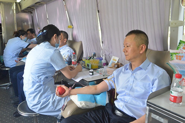 圖為該公司職工積極參加無償獻(xiàn)血