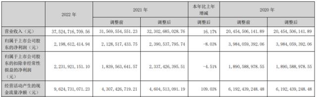 4月20日,深圳能源近日發(fā)布2022年年度報告,報告期內公司實現(xiàn)營業(yè)收入37,524,716,709.56元,同比增長16.17%;歸屬于上市公司股東的凈利潤2,198,612,414.94元,同比下滑8.03%。