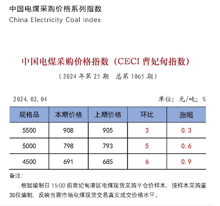 中國電煤采購價格指數(CECI曹妃甸指數)第1065期