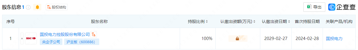 國際能源網(wǎng)通過企查查股權(quán)穿透圖顯示,國投(慶陽)新能源有限公司由國投電力全資持股。