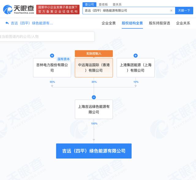 近日,吉遠(yuǎn)(四平)綠色能源有限公司成立,法定代表人為靳榮輝,注冊資本1億人民幣,經(jīng)營范圍含生物質(zhì)能技術(shù)服務(wù)、新興能源技術(shù)研發(fā)、風(fēng)力發(fā)電技術(shù)服務(wù)、太陽能發(fā)電技術(shù)服務(wù)、儲能技術(shù)服務(wù)等。股權(quán)全景穿透圖顯示,該公司由上海吉遠(yuǎn)綠色能源有限公司全資持股,后者由吉電股份(000875)、中遠(yuǎn)海運國際(香港)有限公司、上港集團(tuán)能源(上海)有限公司共同持股。