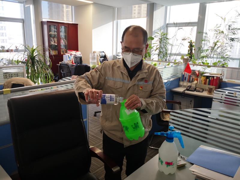 做好辦公區(qū)域的消毒工作,也成了王兆猛的日常。他是一個(gè)特別細(xì)致耐心的人,每天早晚各消毒殺菌一次,從未間斷。消毒的過(guò)程他也從不對(duì)付,包括每間辦公室的門(mén)把手他都要仔細(xì)擦拭一遍。防疫期間,他還與值班同志一起,認(rèn)真排查疫情信息,及時(shí)對(duì)各場(chǎng)站存在的防疫隱患進(jìn)行摸底,當(dāng)好領(lǐng)導(dǎo)的助手,積極協(xié)調(diào)解決防疫期間大家存在的困難。