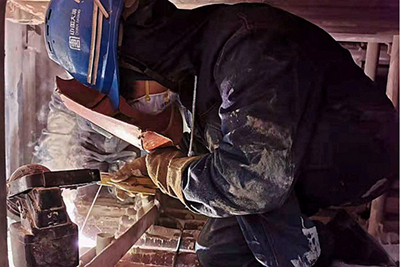 修復(fù)振打器磁軸,更換脫落的陰極線,對倒伏的陽極板進(jìn)行清理、恢復(fù)、固定,唐匯軍就這樣一樣樣地、默默無聞地做著,偶爾工作間隙里,他會(huì)開兩句玩笑,緩和一下枯燥和疲憊。出了爐子,吃個(gè)工作餐,耽誤不到半個(gè)小時(shí),又立即扎進(jìn)了工作中,身邊的同事總是被他的工作態(tài)度激勵(lì)著。“不能偷懶耍滑,必須檢查到位,修必修好。”爬出爐子時(shí)已經(jīng)腰酸背痛,唐師傅依舊微笑得那么純粹。這項(xiàng)檢修工作持續(xù)了半個(gè)月,才得以很好完成。