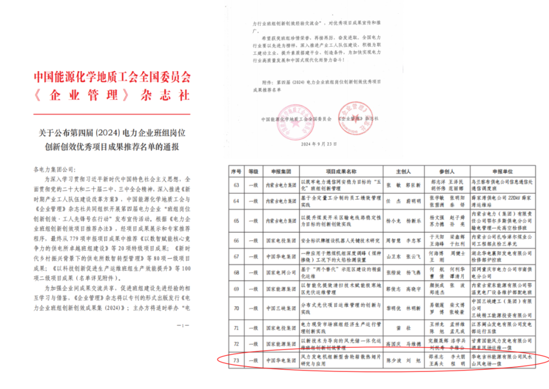 華電吉林公司一成果獲全國(guó)電力企業(yè)班組崗位創(chuàng)新創(chuàng)效項(xiàng)目成果一級(jí)獎(jiǎng)