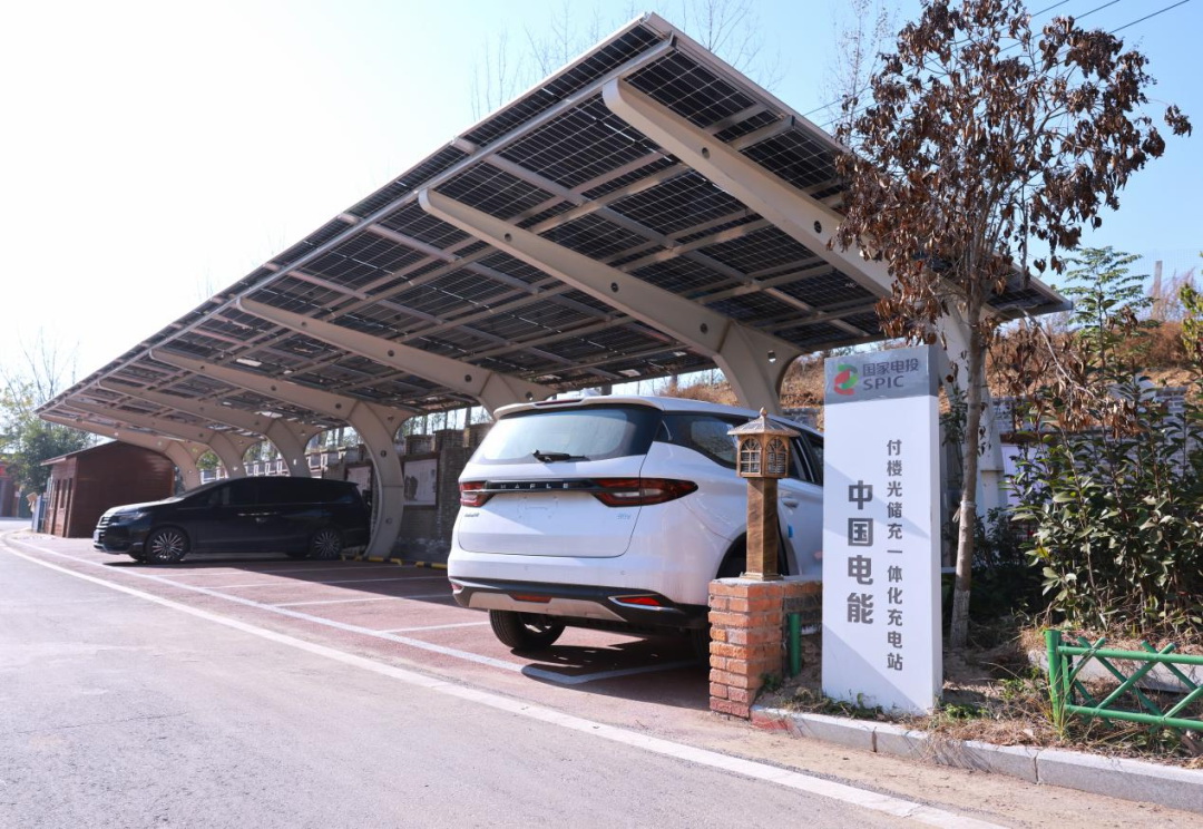 ▲中國電能在河南省蘭考縣付樓村建設(shè)的光儲充一體化充電站